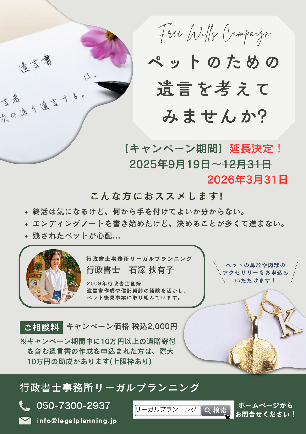 フリーウィルズキャンペーンの実施にあわせて、ペットのための遺言書を作成してみませんか?